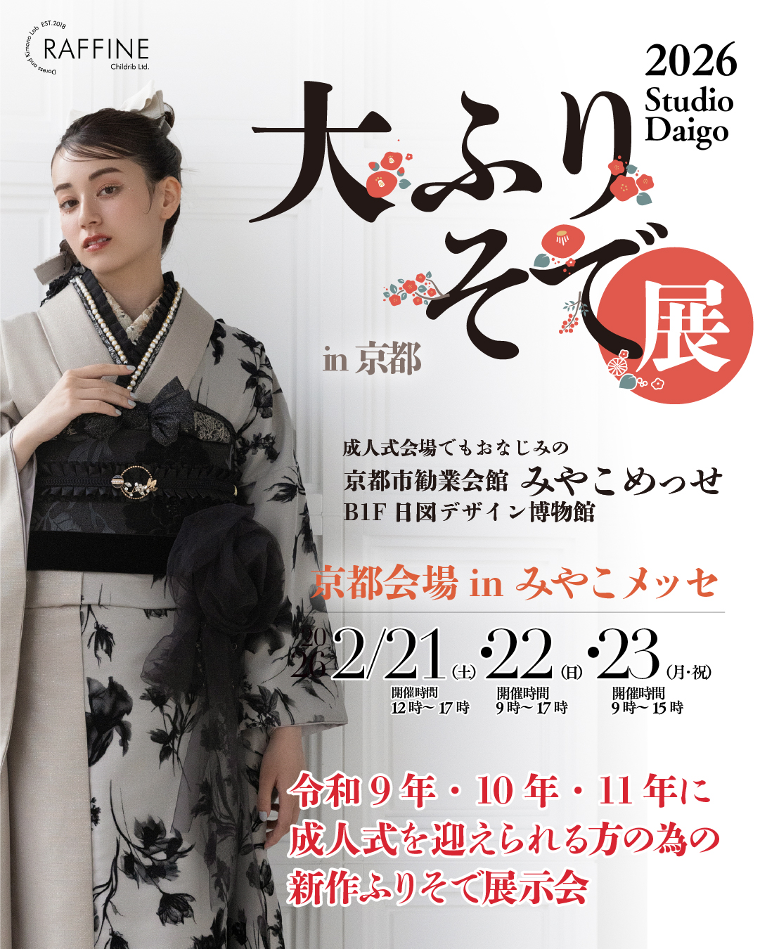 株式会社大醐は、日本の伝統文化である着物を後世に伝えていくことを経営理念に掲げ、平成9年(1997年)の創業以来、特に振袖事業に力を入れており、振袖の販売だけでなく、着付けやマナーなどもお伝えしてきました。